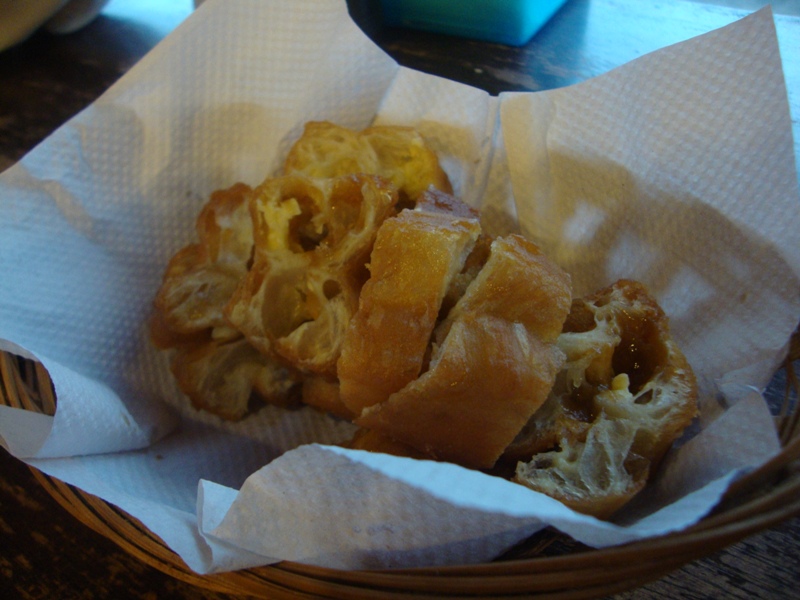 My mom-in-law ordered kaya cha koi, which is old school Chinese oily breadstick smothered with kaya jam. It actually tastes pretty good and matches really well with it