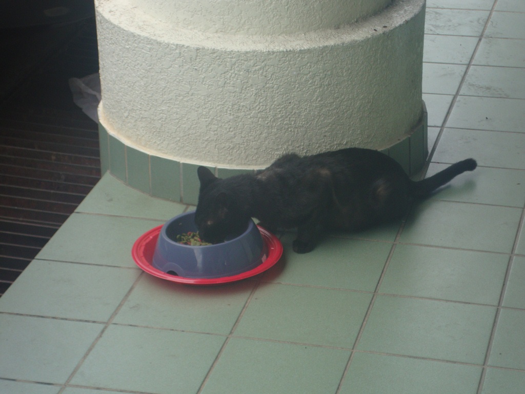 Just thought I'd share this shot of a black kitty enjoying his kitty treats, since it's about food and eating as well
