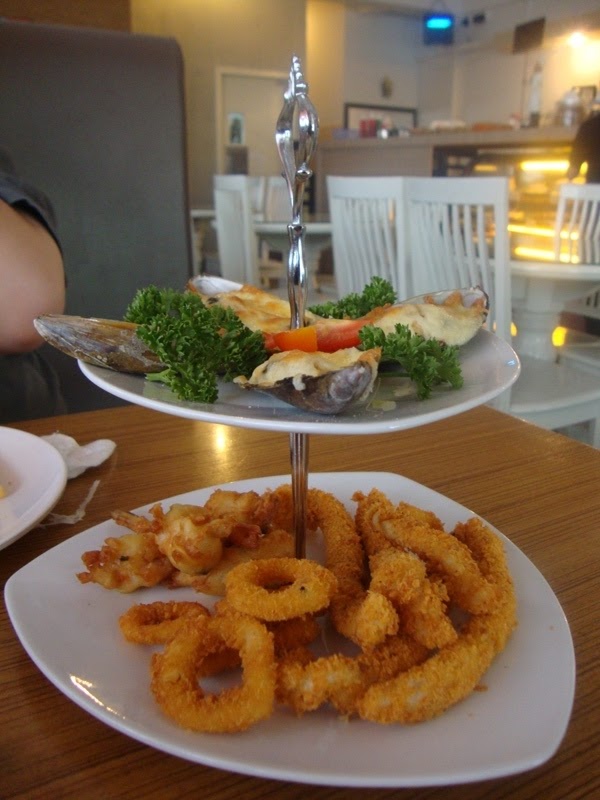 I ordered a seafood dish that is served in an interesting English tray which kinda reminds me of those English breakfast or tea time moments where they serve yummy tiny confectioneries in those trays. Though I have a feeling I'm maybe overpaying for a food which may be considered finger food. I think I paid roughly $16 to $18 for this. Yes, no kidding. But it tastes good, just not enough to satisfy the craving.
