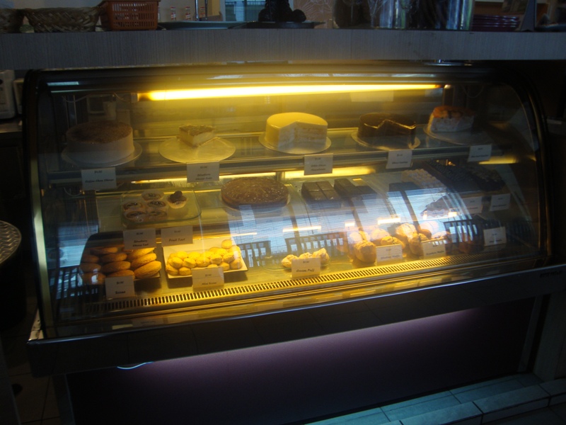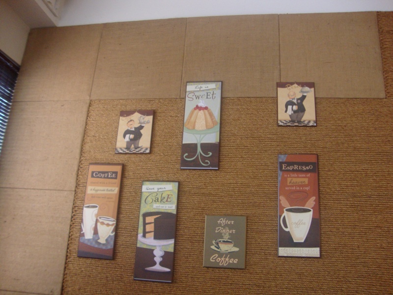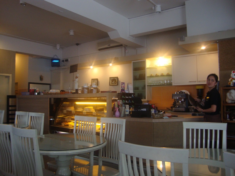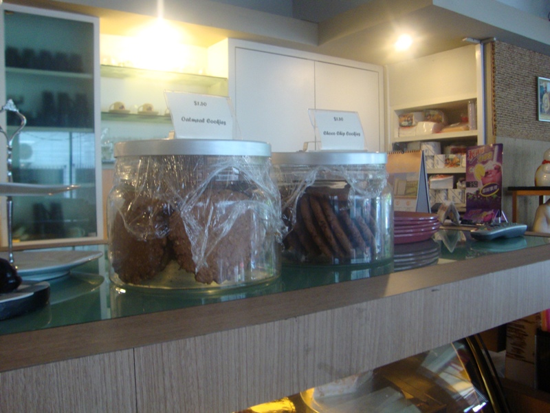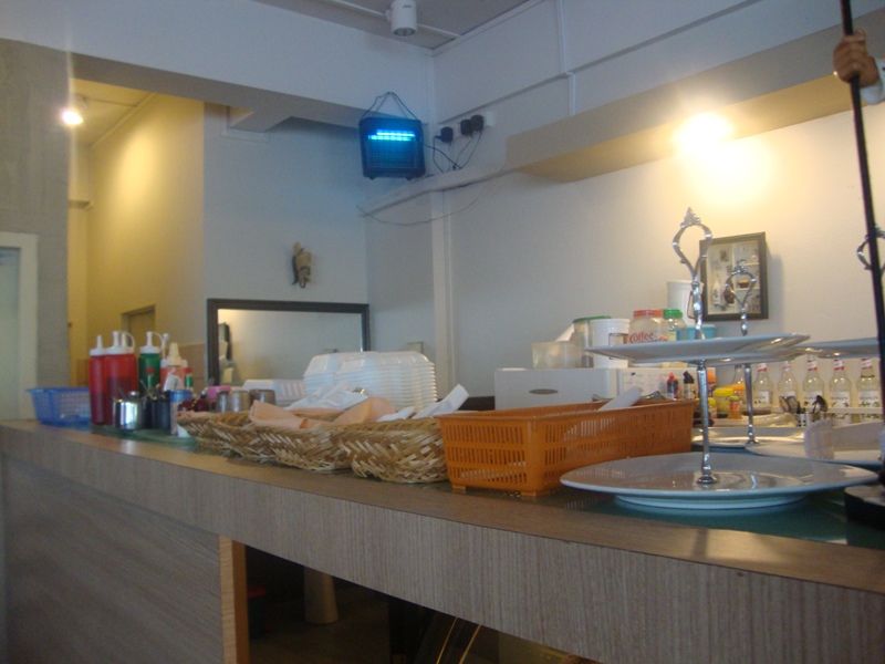 This be the interior of the cafe. Looks very nice; they seem to be emphasizing quite a bit on Western design, what with the props on the walls and the English-esque tray on the counter and whatnot. My favourite would be the small little frame posters on the walls. Those were real kudos to whoever put them. I'm artsy, sue me