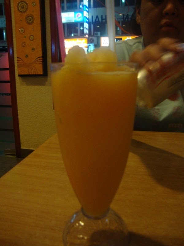 I ordered this mango mixed with orange slush drink, and somehow oddly enough, it tastes like kasturi or something. LOL, wonder if that really is supposed to be a mixture of mango and orange or maybe they used cordials to create that