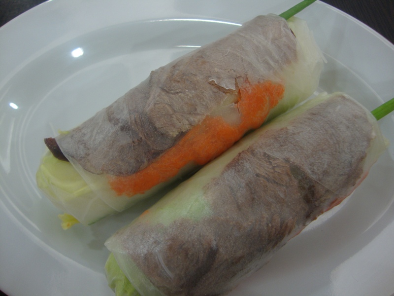 Beef spring roll (again, I can't remember the actual Vietnamese name for it), which consist of slices of beef and tons of vegs and glass noodles wrapped in edible rice paper. Almost like the spring roll I ate in Bakerlyn Cafe, it almost feels like eating grass, in a good way, that is, though the meat is there to cut down on the eating grass feeling, LOL