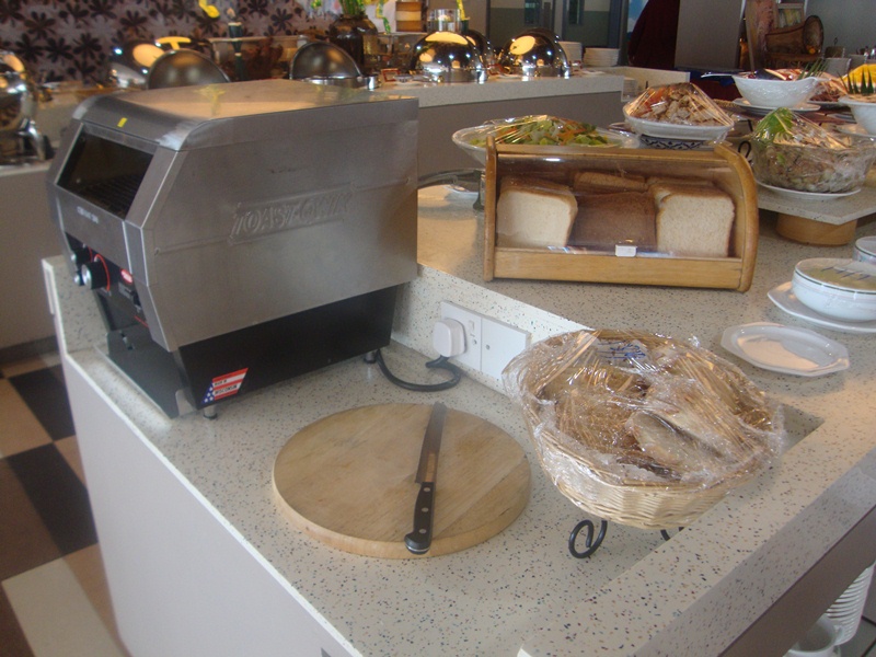 The appetizer section, ready with the bread and butter and the toast-making machine