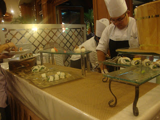 This is the cake display in front of the exterior dining. Those who want to buy cakes on the fly can go over to buy it, but I doubt they display it in front of everyone during the day since it's fasting time, but looks pretty yummy. Pricey though, but it's a given for hotel food