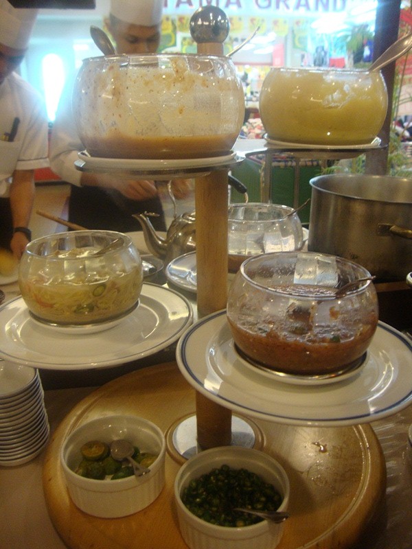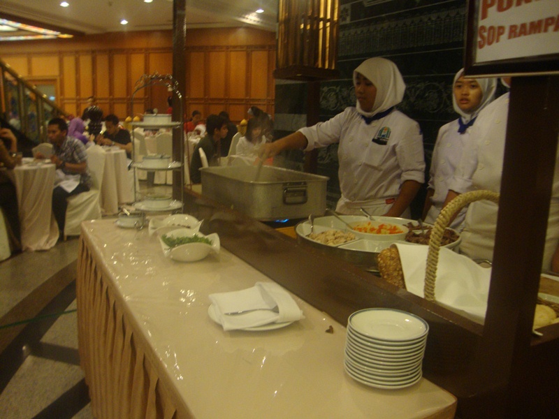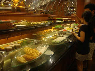 This be the interior and the exterior of the restaurant. Typical Malay hotel design more or less, and as you can see, it's filled with the hustle-bustle of guests gathering altogether for the buffet bargain. Bruneians, always the slave for bargains and best offers, and we have fallen victim for it XD