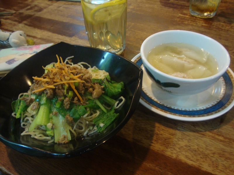 Food: Wantan kolo mee with wantan soup as side dish