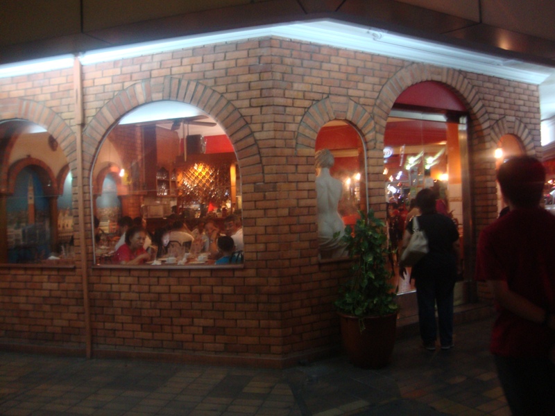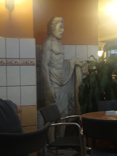 Setting: Proper Italian bistro design inside and out, bricks and all, with Greek (or issit Roman) statues to boot