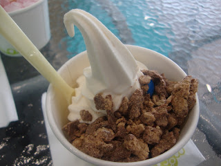 Not a self-service kind of yogurt parlour like Tutti Frutti, and maybe coz I was too partial towards that yogurt parlour, I felt that this one was not as much in variety of toppings as the other, and somehow I wasn't too impressed with it. Though at least this one is charged per serving, not per weight, so not too much money needed to be spent