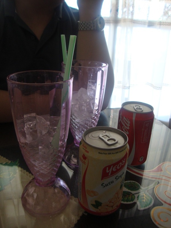 Drinks: Coca Cola (my buddy) and Yeo's Soya Bean drink (mine)