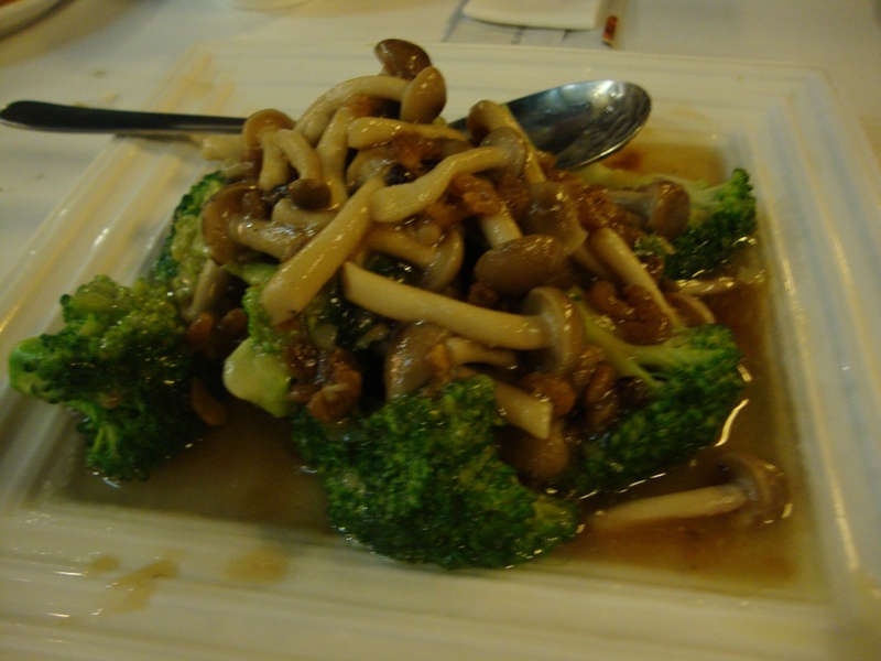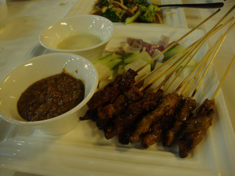 Food: Broiled broccoli and mushroom, prawn otak-otak, beef and chicken sate, steamed fish and fried butter prawn