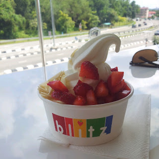These are the yoghurt that my buddy and his cousin bought. I wasn't really in a mood for yoghurt coz I was craving for my ice-cream that is waiting in the freezer in my home, so I only took brief shots of their yoghurt. Looks nice and yummy though. The yoghurt itself comes with a few different flavours: one the usual standard yoghurt flavour, then (I think) the vanilla flavour, and two of the "flavour of the day" flavours depending on what day it is in the week.Technically I've already tried the yoghurt before when I came here for the first time during the debut opening of the newly made 1st and 2nd floor of the renovation and extension of Supersave, and I actually liked the taste. At least it didn't taste as sour as the one in Mochi.
