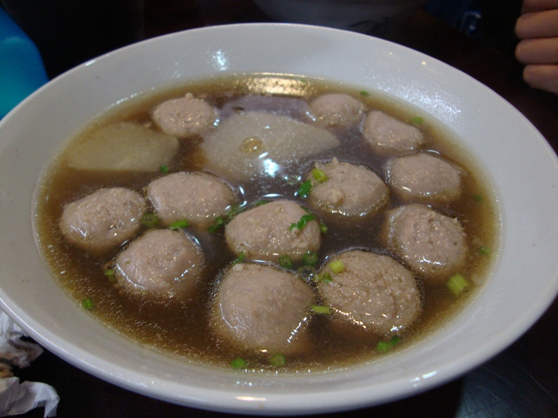 Noodles with beef balls and radish on the side