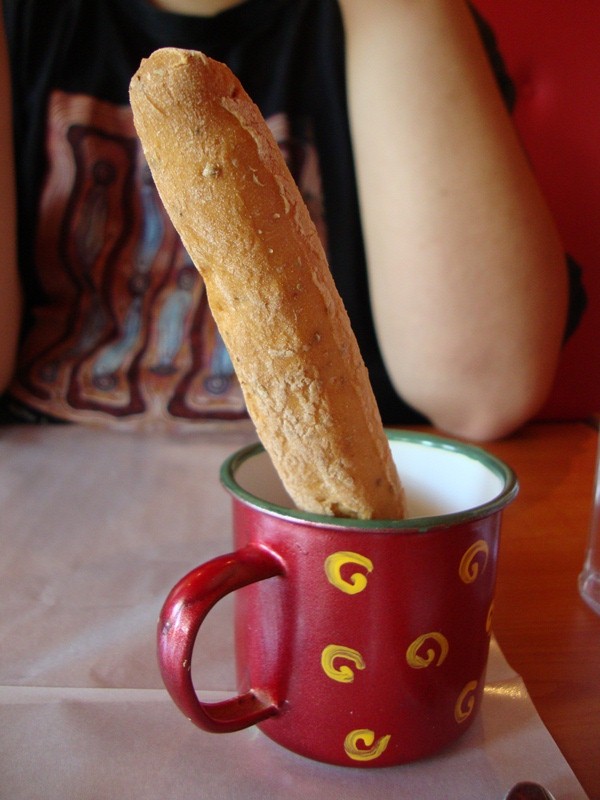 | Appetizers: Pretty huge-ass bread stick, crunchy and hard and a little tough on my teeth, but pretty good neways |