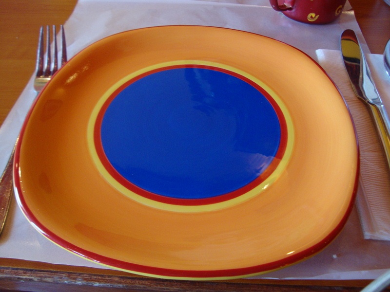 | Super colourful and brightly "lit" plates, though not sure it's Spanish-themed accurately |