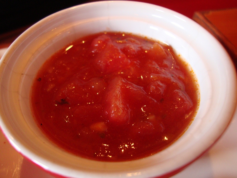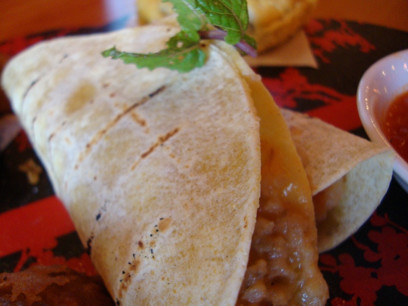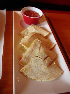 | Quesadilla, nice and soft, like eating roti canai, with an interesting tomato salsa dip |