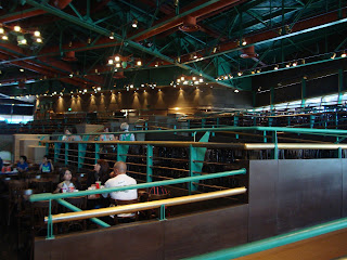 | Setting: Almost sci-fi-ish, and there apparently is a live orchestra band just so happen to be rehearsing when we were there, and while customers dine, they were being shown a series of Disney-Pixar shorts for entertainment |