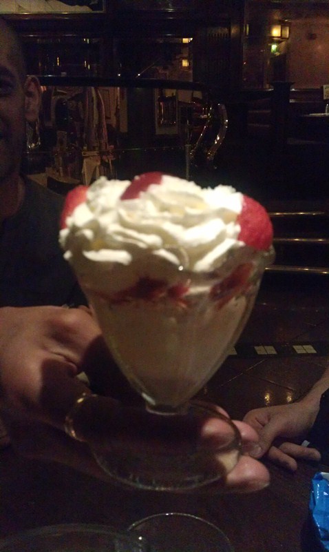 | My bro and sis in law's dessert, which look like some sort of cream pudding with raspberries or something |