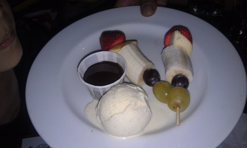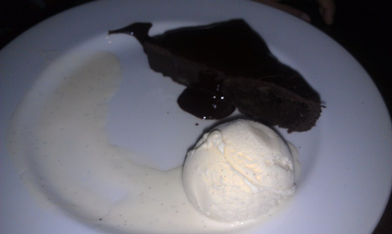 | My younger nephew's dessert of chocolate lava cake with vanilla ice-cream and strawberry |
