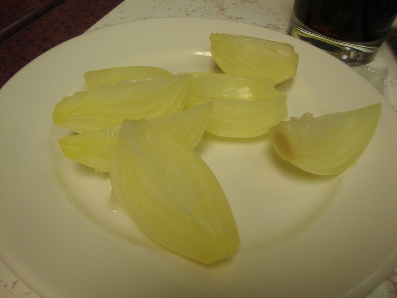 | Pickled onions for starters, and holy fuck! They're absolutely sour! >___0;;; |