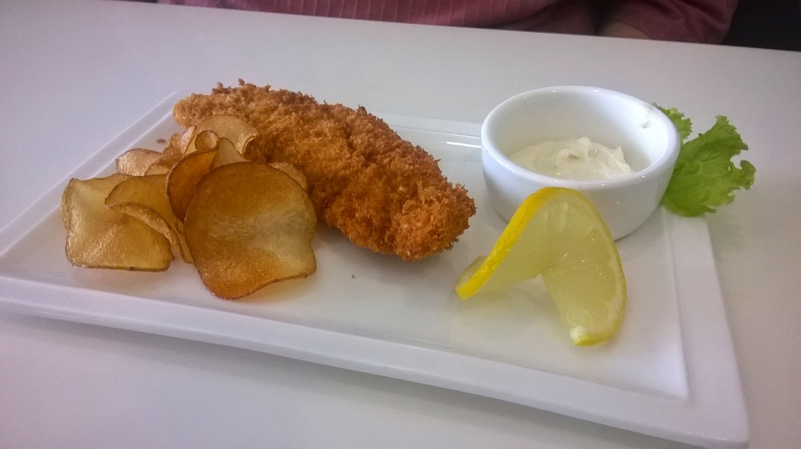 Very interesting presentation, though it's like the smallest fish and chips I've ever seen. It was served mostly as an appetizer rather than an actual meal, and the chips were literally chips, as in the chips you get when you're buying junk food like Pringles and Jack & Jill's. Very crunchy and fine. They must've put a lot of effort into it.