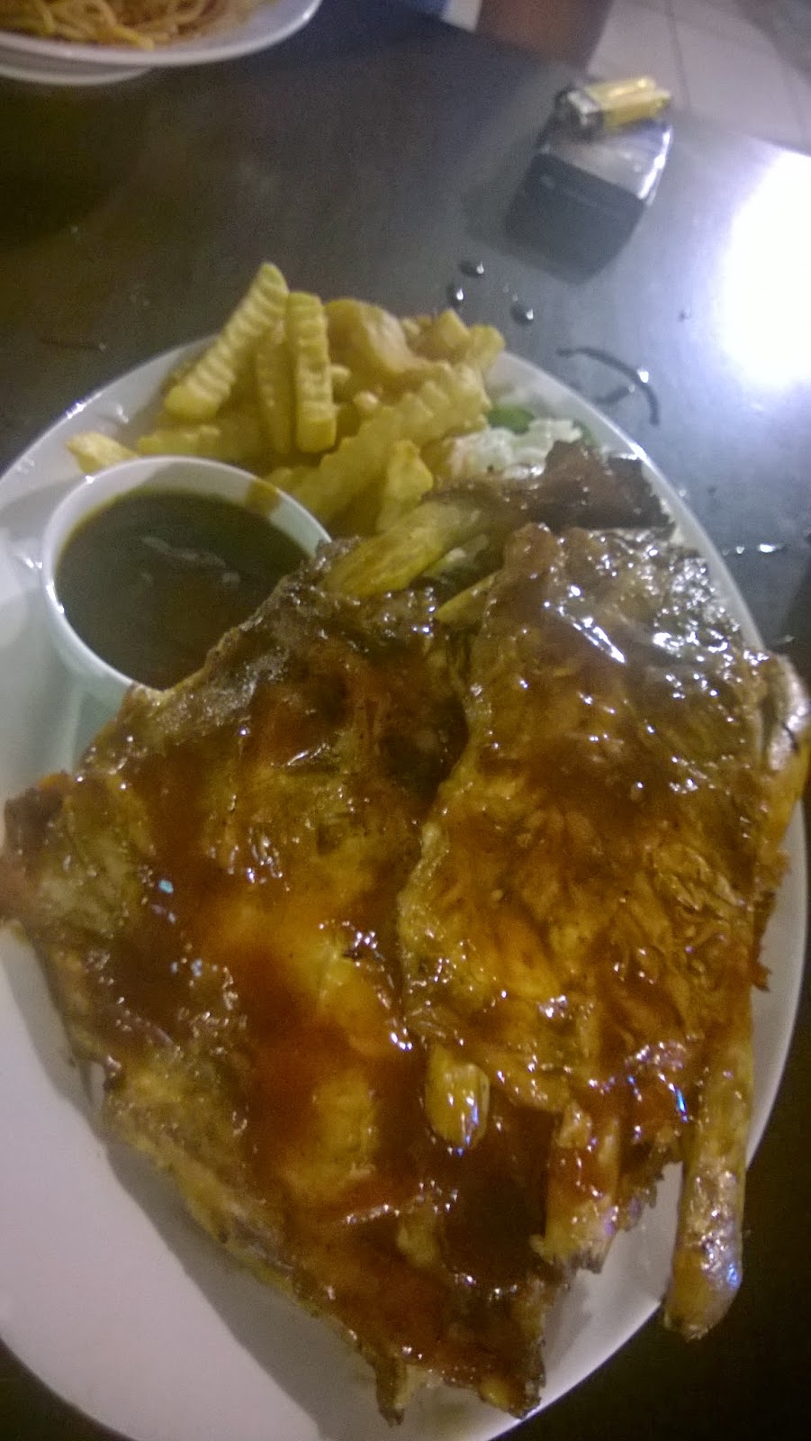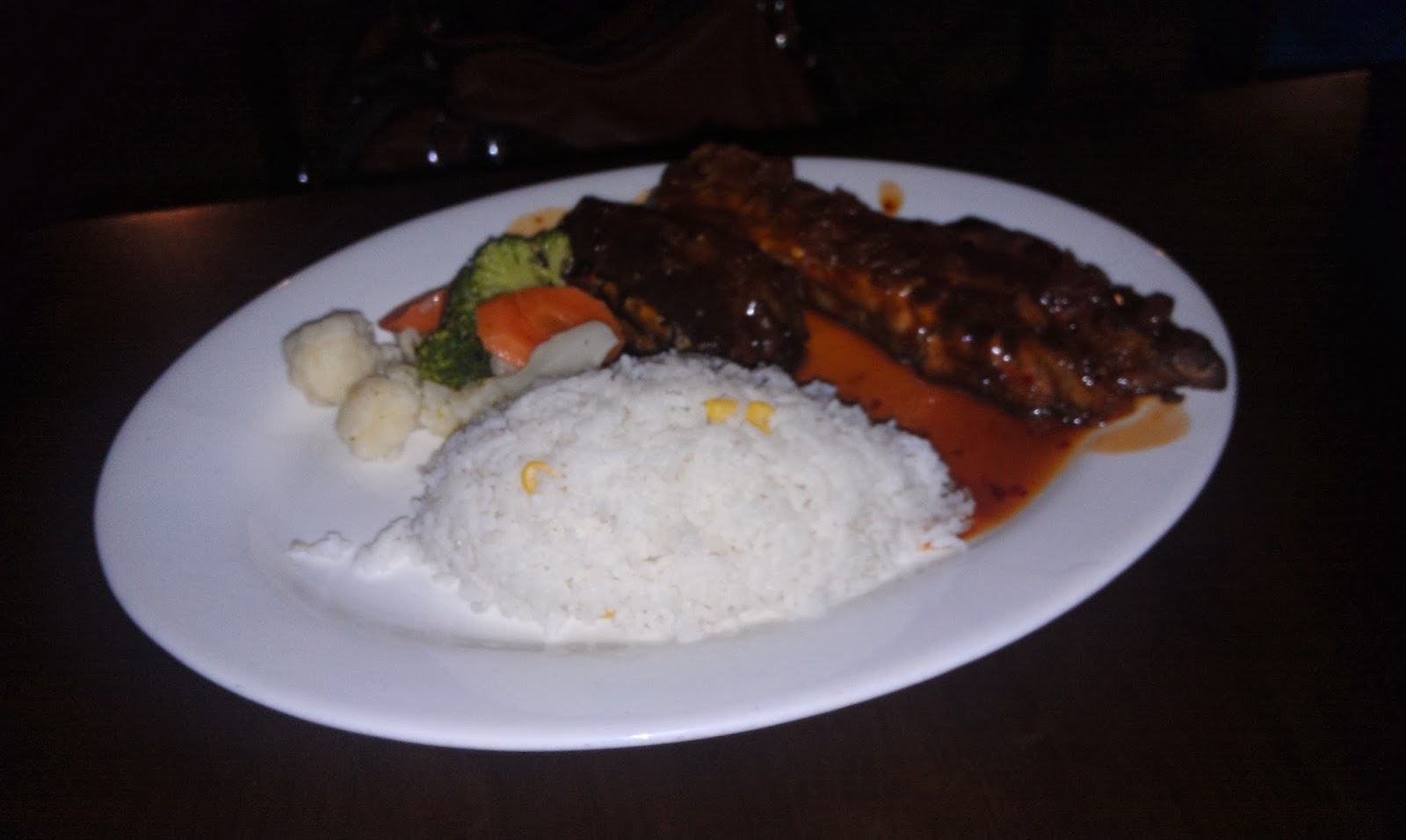 The food there tastes amazing, though the only beef I have is that the portion is ABSO-FUCKING-LUTELY HUGE!! It's even huger than the pork ribs I had in London! What do they feed the pigs with? Steroids??