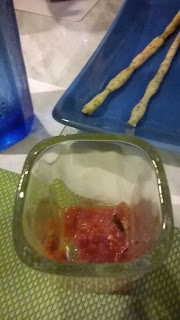 | Our appetizer with some kind of vinegar-ish guacamole dip |
