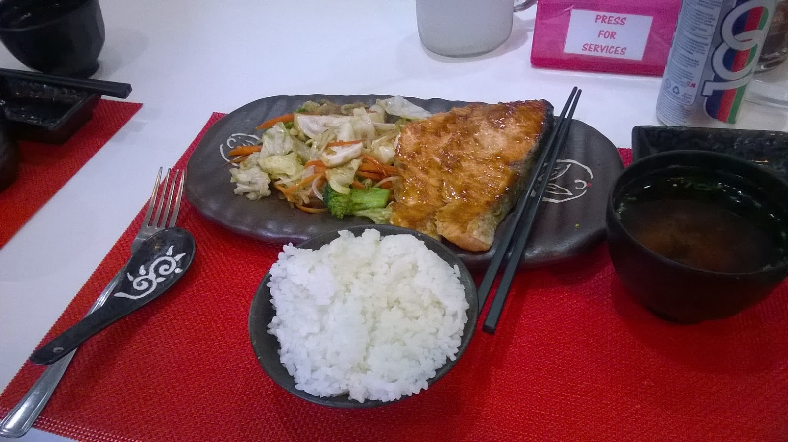 The food overall is pretty nice and flavorful. I especially like the tori katsu chicken, very crispy on the outside and juicy on the inside. The garlic rice have just the right combination of flavour to it and the wakame and ebi tempura, while not as good as the ones in Excapade or Misato, taste just as good. Sadly because it was flavourful, it's also quite salty, and leaves you with the thirsty aftermath. I had to buy a large drink for my movie snacks after that, it was that salty. You don't feel it at first, just after you finish eating.